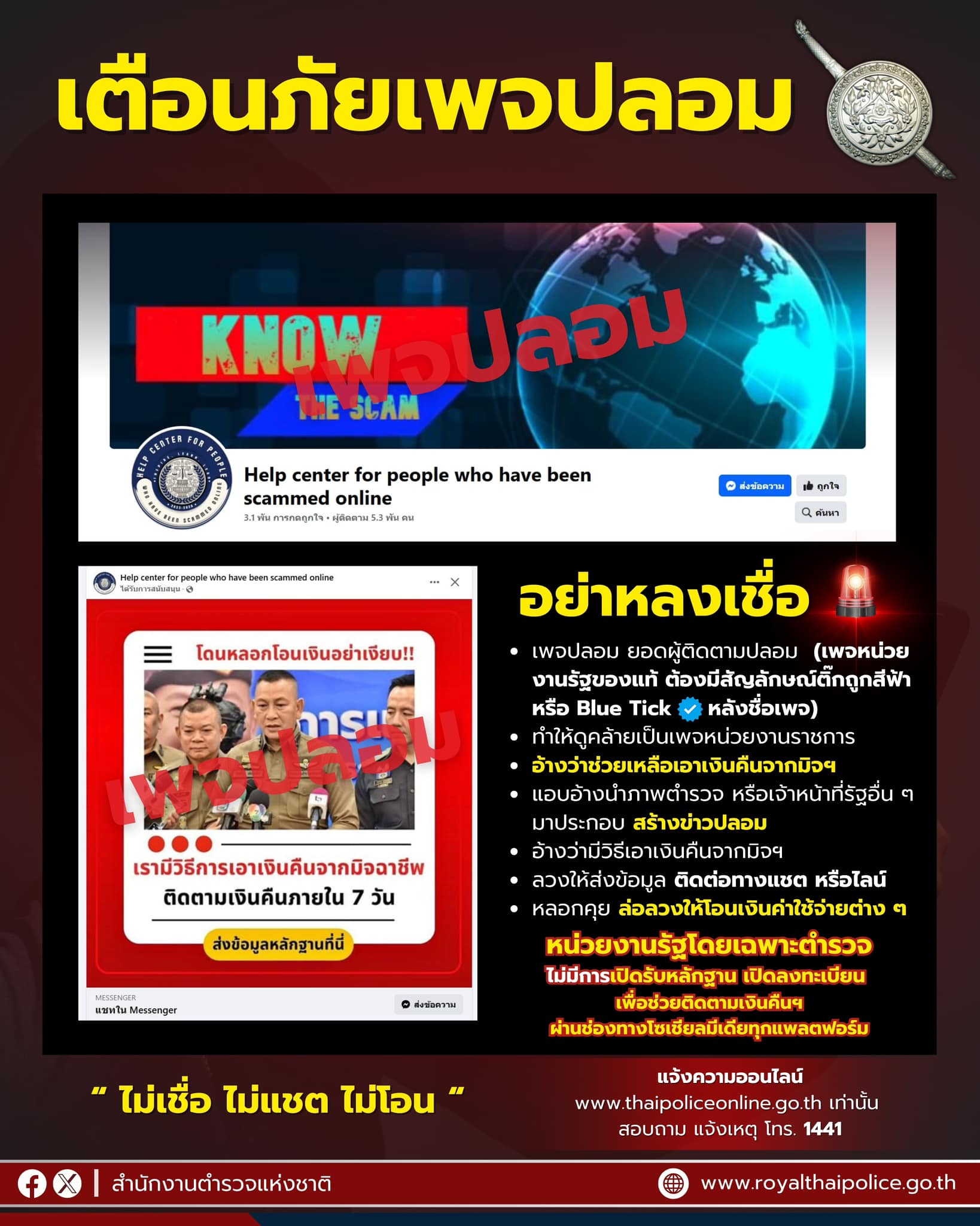 หน่วยงานรัฐโดยเฉพาะตำรวจ ไม่มีการเปิดรับลงทะเบียน รับหลักฐานเพื่อช่วยเหลือติดตามเงินคืนผ่านช่องทางโ