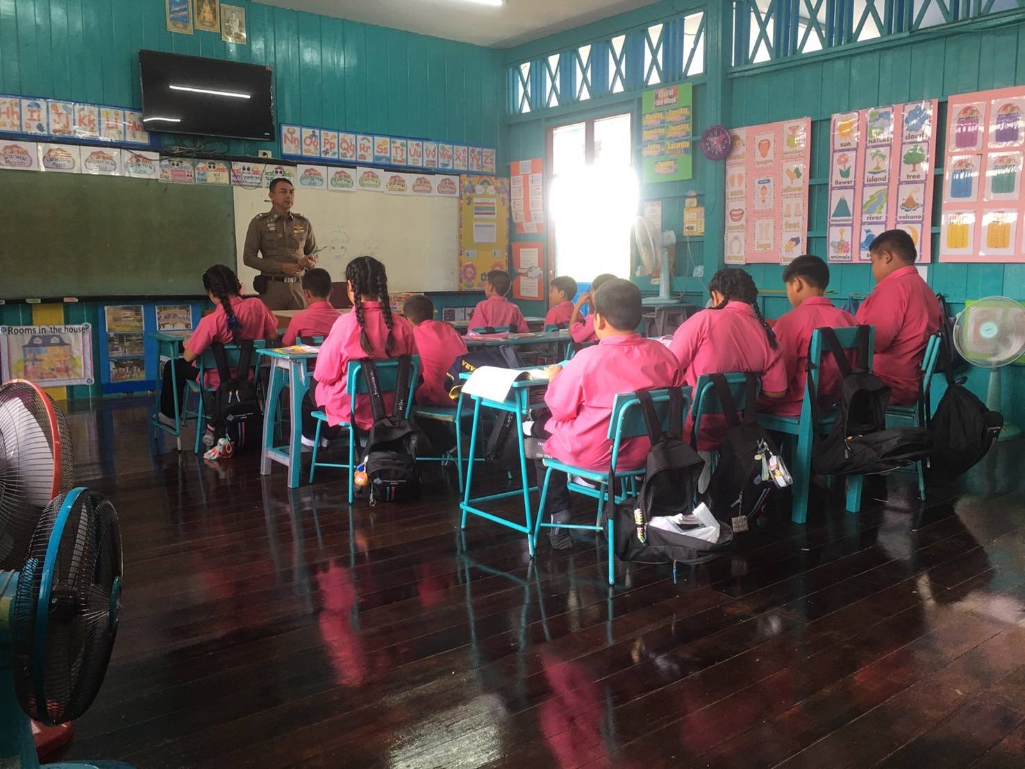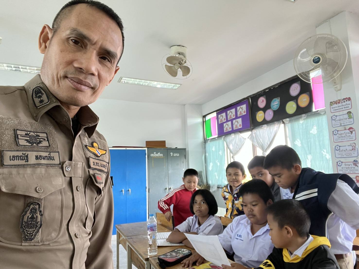 ครูตำรวจ D.A.R.E. ดำเนินการสอนตามโครงการ การศึกษาเพื่อต่อต้านการใช้ยาเสพติดในเด็กนักเรียน