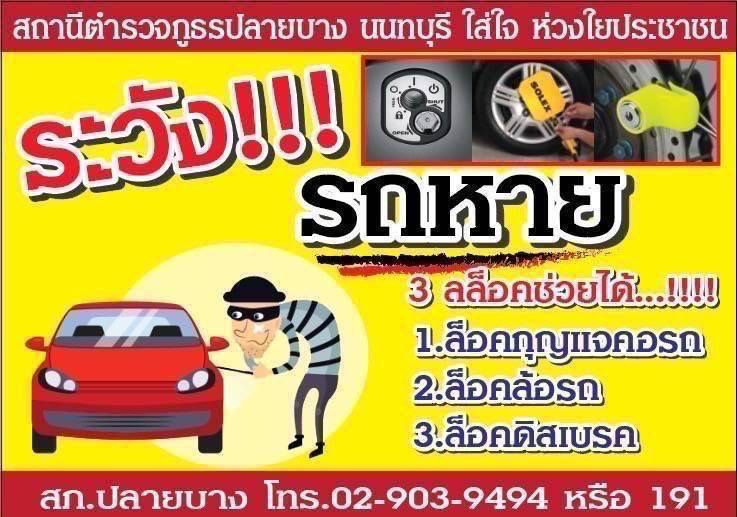 มาตรการป้องกันการโจรกรรมรถ —————————- สภ.ปลายบางภ.จว.นนทบุรี ภายใต้การอำนวยการของ พ.ต.อ.รักศักดิ์ เม