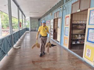 ดำเนินกิจกรรม “จิตอาสา”ช่วยเหลือเก็บกวาด เศษวัสดุตกหล่นกรณี ห้องเรียน อาคารเรียน โรงเรียนนุ่งประสงค์วิทยา ได้รับความเสียหาย จากฝ้าเพดานร่วงหล่นเนื่องจาก พายุฝนลมแรง และ ปรับปรุงภูมิทัศน์ บริเวณโดยรอบโรงเรียน