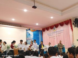 นาง ทิพวรรณ ลังกะสูตร ครูใหญ่โรงเรียน วรรัตน์ศึกษานนทบุรี พร้อมคณะผู้บริหารครูนักเรียน