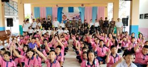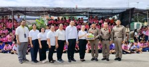 พร้อมด้วยเจ้าหน้าที่ตำรวจ สภ.ปลายบาง ได้ร่วมกันบรรยายให้ความรู้และซักซ้อมแผนเผชิญเหตุ(หนี ซ่อน สู้) และสาธิตการควบคุมบุคคลคุ้มคลั่งด้วยปืนตาข่าย โดยมีขั้นตอนดังนี้