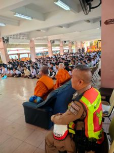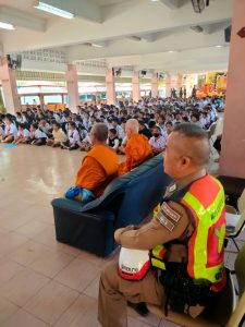 ปลายบาง 603 ว.4 อำนวยความสะดวกการจราจรและรักษาความปลอดภัยสนามสอบธรรมสนามหลวงของ นักเรียน โรงเรียน เทศบาลปลายบางวัดส้มเกลี้ยง โรงเรียนเทศบาลปลายบางวัดอุบลวนาราม โรงเรียนนุ่มประสงค์วิทยา ณ โรงเรียนวัดใหม่ผดุงเขต หมู่ 3 ต.ศาลากลางฯ จำนวนนักเรียนร่วมสอบ 323 คน