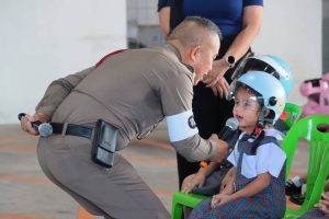 ในกิจกรรม ได้ร่วมมอบหมวกนิรภัย จำนวน 30 ใบให้กับนักเรียนและผู้ปกครอง