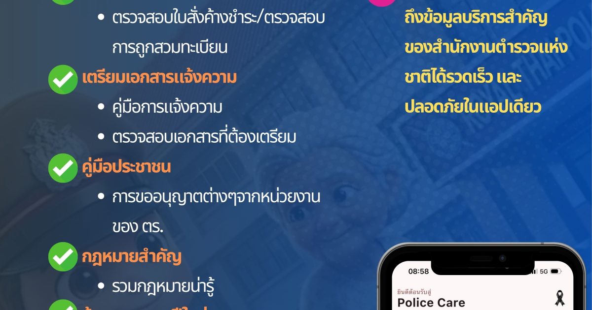 แอปพลิเคชัน Police Care ทำหน้าที่เป็น “หน้าหลักบริการประชาชน” รวมฟังก์ชันที่ประชาชนใช้งาน หนึ่งในฟังก์ชันที่มีความสำคัญอย่างยิ่ง คือ เมนู แจ้งอายัดบัญชีด้วยตนเอง ซึ่งได้รวบรวมเบอร์ศูนย์ Hotline (AOC) ของธนาคารทุกแห่ง เพื่อให้ผู้เสียหาย จากอาชญากรรมออนไลน์สามารถติดต่ออายัดบัญชีได้ทันที ลดความเสียหายและเพิ่มโอกาสในการติดตามทรัพย์สินคืน