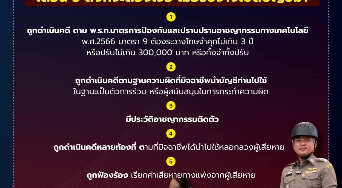 สำนักงานตำรวจแห่งชาติจึงขอเตือนที่น้องประชาชน ถึง 5 สิ่งที่จะเกิดขึ้น หากท่านรับจ้างเปิดบัญชีม้า ดังต่อไปนี้