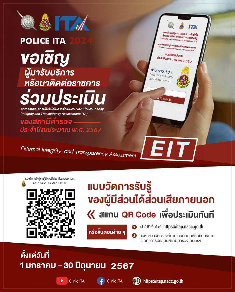 – ให้สถานีตำรวจนำช่องทางการเปิดเผยข้อมูลสาธารณะ (OIT) เปิดเผย ณ จุดให้บริการ และพัฒนา  การให้บริการเพื่อสร้างความรวดเร็วและความสะดวกให้แก่ประชาชน ก่อนทำการประเมินแบบวัดการรับรู้